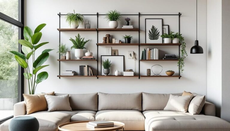 | Étagères murales | Utilisation de la hauteur | Livres, objets peu utilisés |