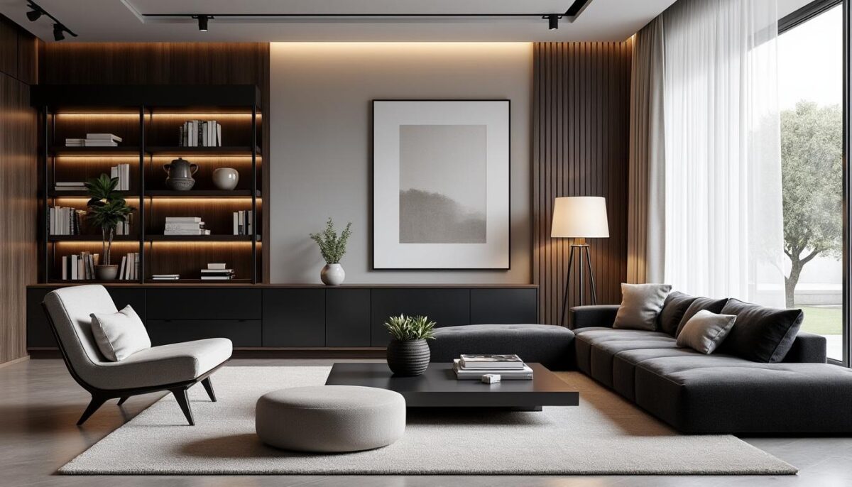 Pour éviter un aspect trop austère, il faut intégrer des textures douces (tissus, tapis) et des éléments naturels qui réchauffent la pièce sans la surcharger.