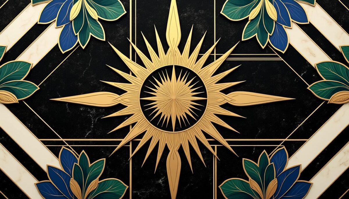 Les couleurs phares de l’art déco sont les tons profonds comme le vert sauge, bleu nuit, ocre ou rouge brique, souvent associés à des touches métalliques dorées pour un effet chic.